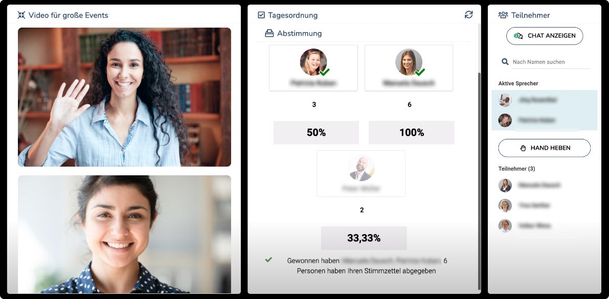 Den Verlust an Interaktion durch das fehlende Bild können Organisatoren durch Struktur und Meeting-Führung ausgleichen. Dadurch wird auch aus einem normalen Onlinemeeting ein Formelles Online Meeting, also ein FOM. Spezielle FOM-Software beinhaltet unter anderem ein Agenda- und Sprechermanagement, das Teilnehmer per Handmeldung zu Wort kommen lässt – wenn nötig auch mit Bild. Statt konstant alle Kameras laufen zu lassen, kann moderne FOM-Software selektiv nur die relevanten Personen ins Bild nehmen.