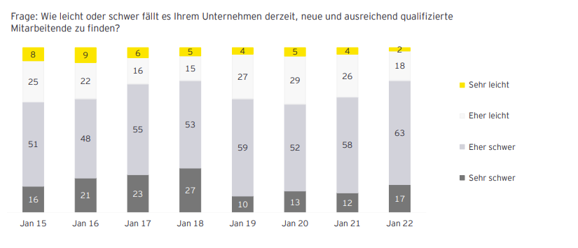 Neue Mitarbeiter zu gewinnen und bestehende zu halten wird für Unternehmen deshalb zunehmend zur Herausforderung: Laut einer Studie von Ernst & Young haben 80 Prozent aller deutscher Mittelständler Schwierigkeiten, ausreichend qualifizierte Mitarbeiter zu finden – und das Problem wird sich in Zukunft auch aufgrund des demographischen Wandels weiter verschärfen.